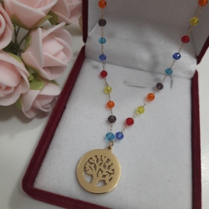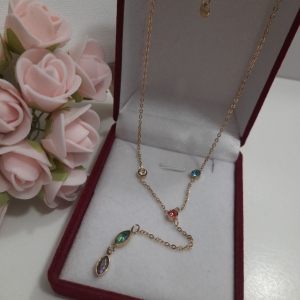 Naszyjnik krawatka z sercem i liśćmi monstery
